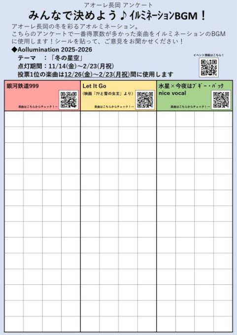 応募方法はアオーレ長岡に設置された以下のアンケートに答えるだけ!