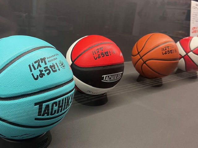 寄贈するボールには「バスケのまちながおか」のオリジナルロゴと「新潟アルビレックスBB」のチームロゴ入り!