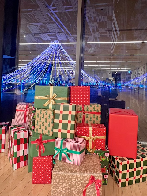ナカドマを望むガラスには、プレゼントBOXの山👀✨