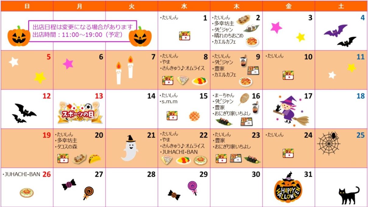 2025.09.2910月のナカドマキッチンカーの出店スケジュールです!日頃からアオーレ長岡をご利用いただきありがとうございます。10月のナカドマのキッチンカースケジュールです!移動販売車スケジュール(R7.10)ダウンロード共有:クリックして Twitter で共有 (新しいウィンドウで開きます)Facebook で共有するにはクリックしてください (新しいウィンドウで開きます)
