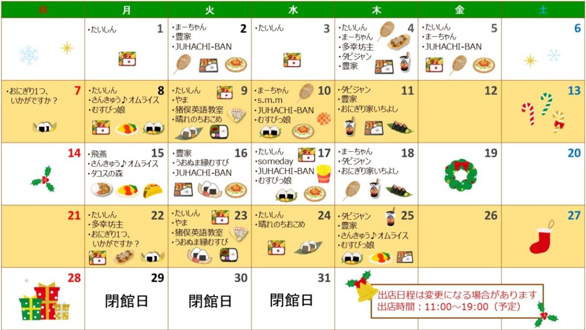 2025.11.3012月のナカドマキッチンカーの出店スケジュールです!お知らせ日頃からアオーレ長岡をご利用いただきありがとうございます。12月のナカドマのキッチンカースケジュールです!移動販売車スケジュール(R7.12)ダウンロード共有:クリックして Twitter で共有 (新しいウィンドウで開きます)Facebook で共有するにはクリックしてください (新しいウィンドウで開きます)